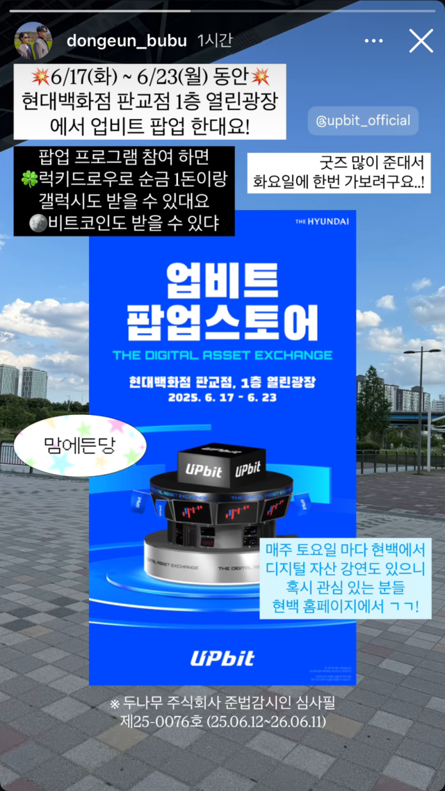 업비트 팝업스토어는 디지털 플랫폼의 세계관을 오프라인 공간과 온라인 바이럴로 입체화한 사례였습니다.